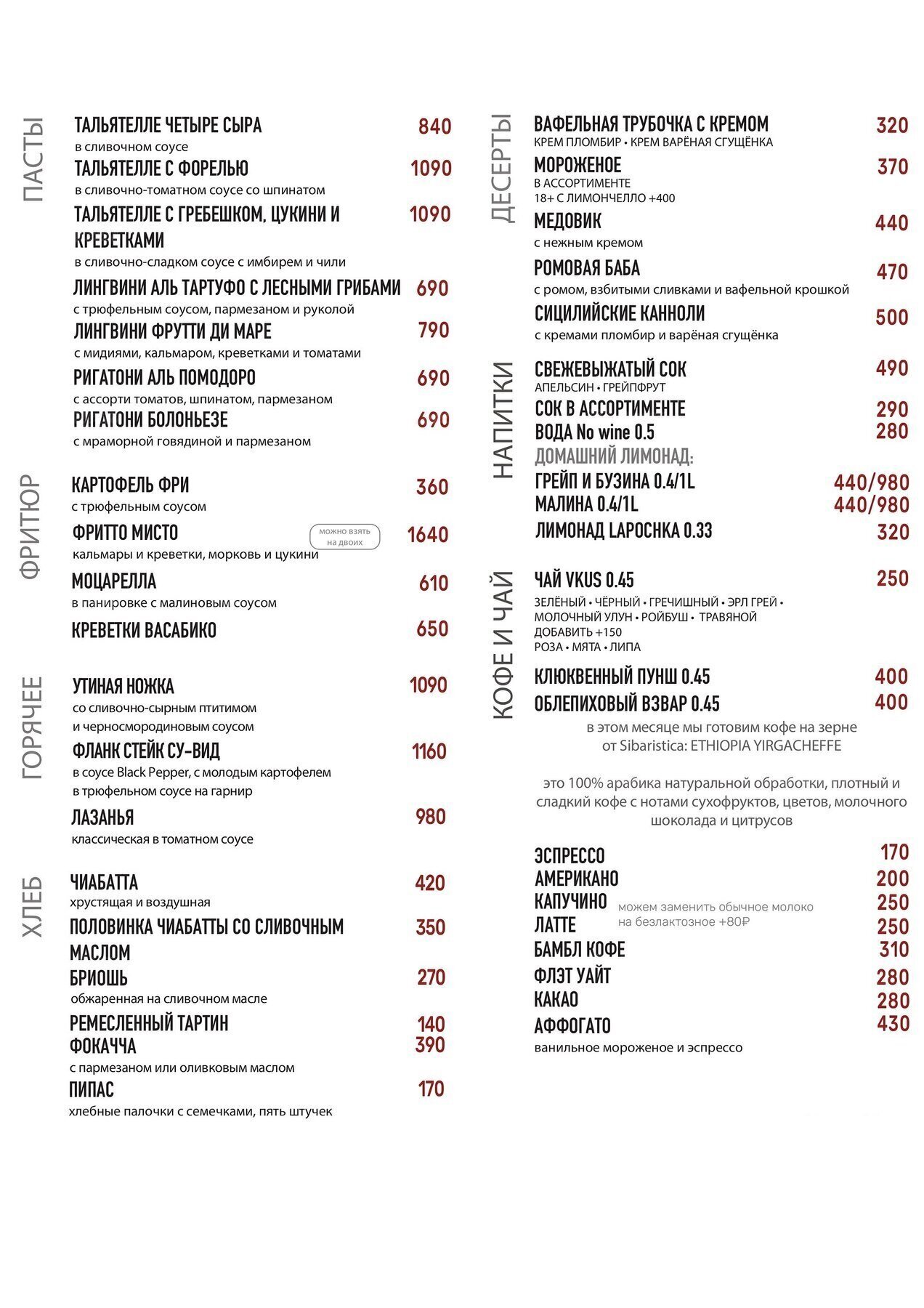 - Кухня: европейская, итальянская