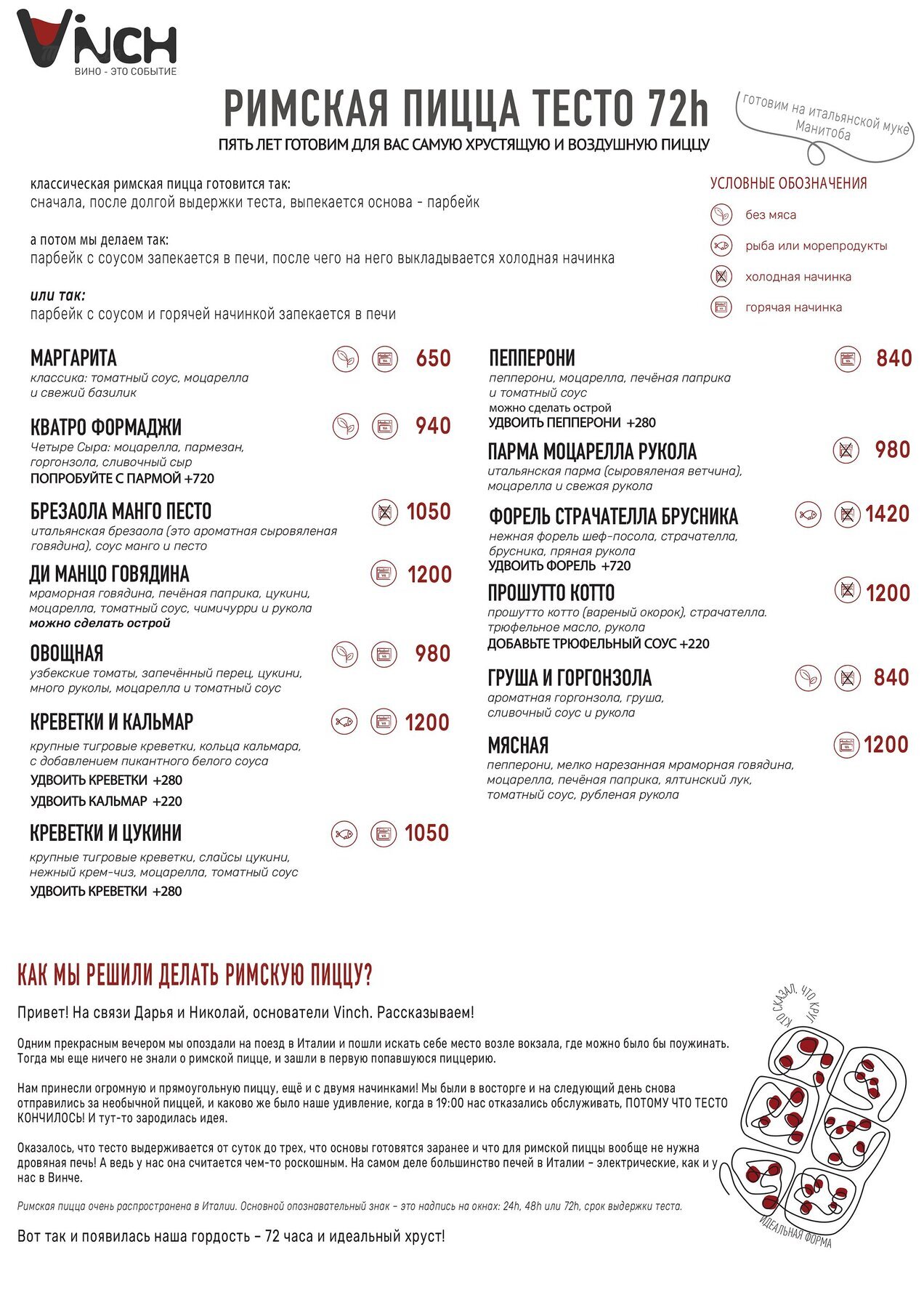 Vinch на Гороховой — гастробар городской сети, где делают ставку на тартары и римскую пиццу, а меню строится вокруг европейской и итальянской кухни.