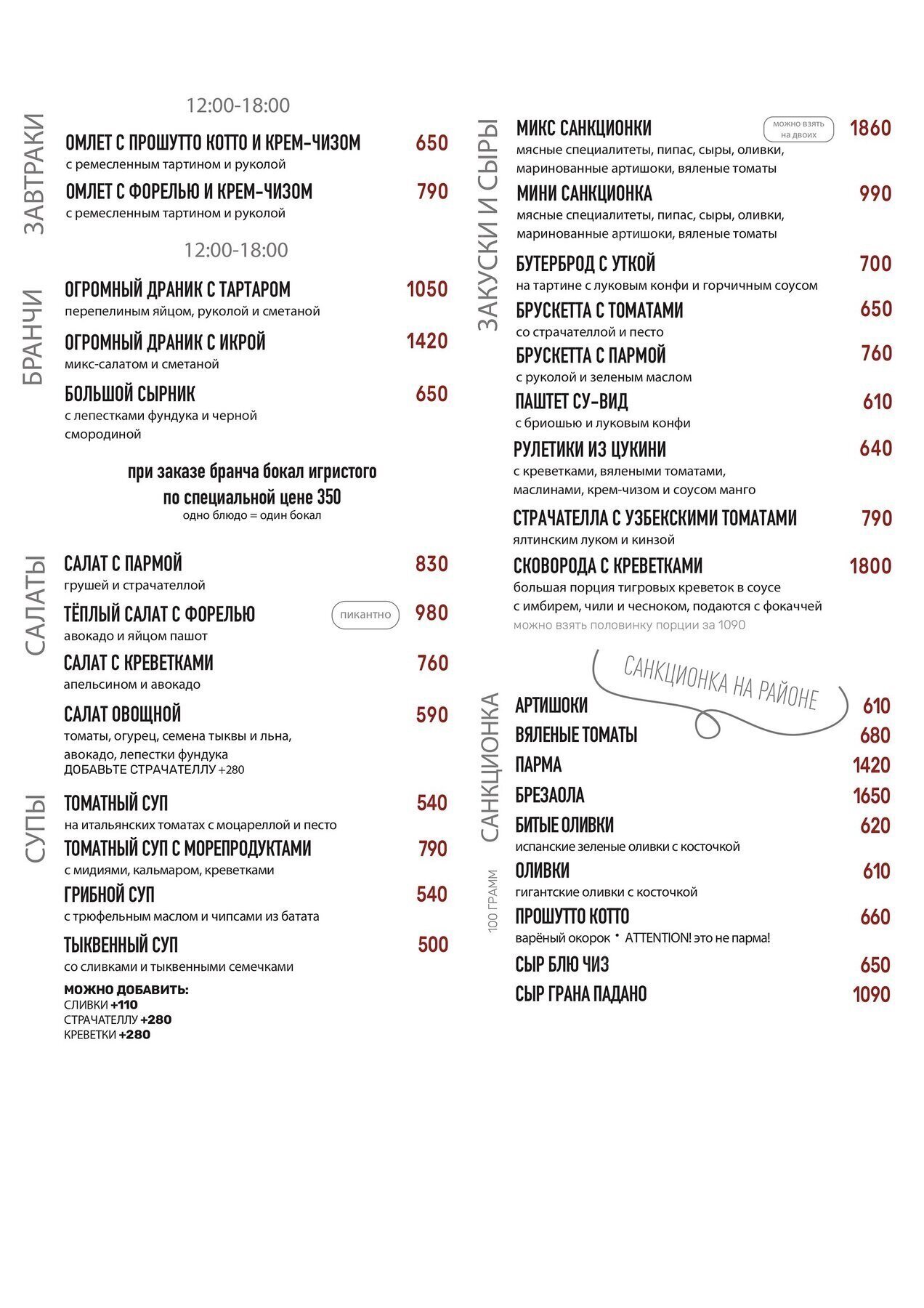 - Завтрак: Ежедневно 12:00-18:00, От 650 ₽